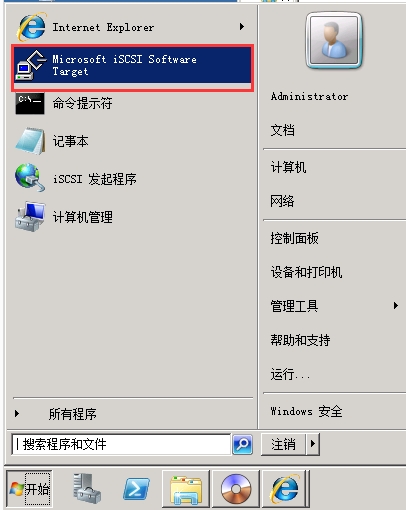 點擊開始,找到Microsoft iSCSI Software Target,并打開