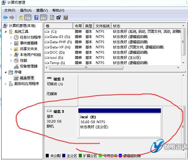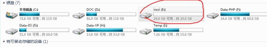 然后,在客戶端(以windows 7為例),看一下,如何連接ISCSI,請?jiān)L問windows server 2008R2部署ISCSI》。